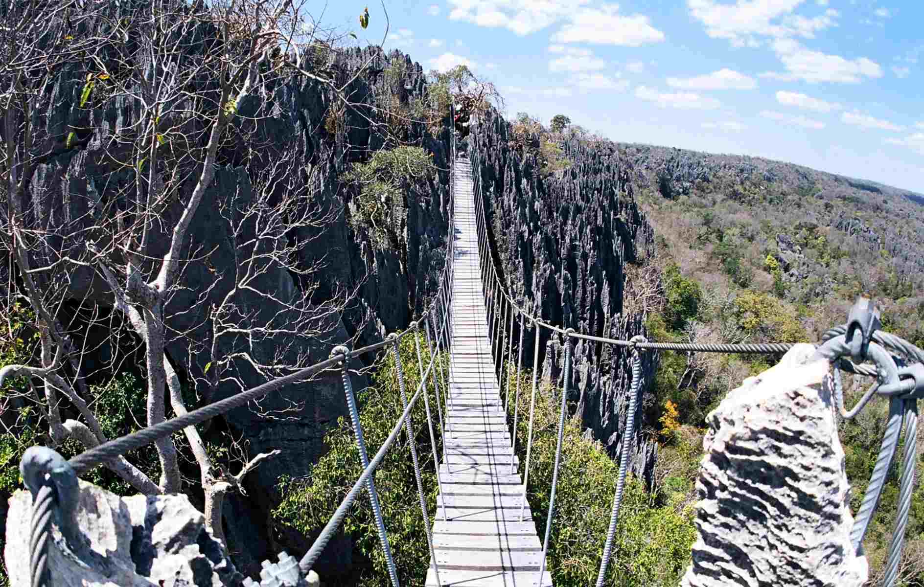 After breakfast, drive to Tsingy de Bemaraha National Park for a guided exploration of the Great Tsingy. Traverse its dramatic limestone peaks and suspended rope bridges for breathtaking views. Return to your hotel for lunch. In the afternoon, discover the unique landscapes of the Small Tsingy on a shorter and equally fascinating hike. Return to your hotel in Bekopaka.
